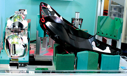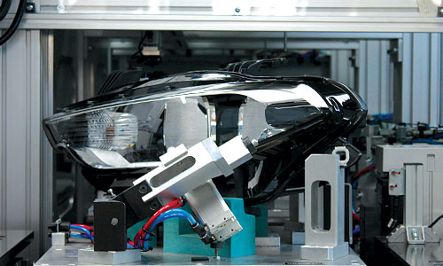 Lens ve gövde 2 komponentli silikon veya poly urethan yapıştırıcı madde kullanılarak birleştirilir.Yapıştırıcı maddenin gövde kanalı içerisine döşenmesinden önce plasma tekniği kullanılarak yüzey hazırlanır ve yapışmanın etkisi artırılır.Uygulama 6 eksenli robotlar,karışım ayarlayıcı pompa grupları ve plasma ünitesi kullanılarak gerçekleştirilir.